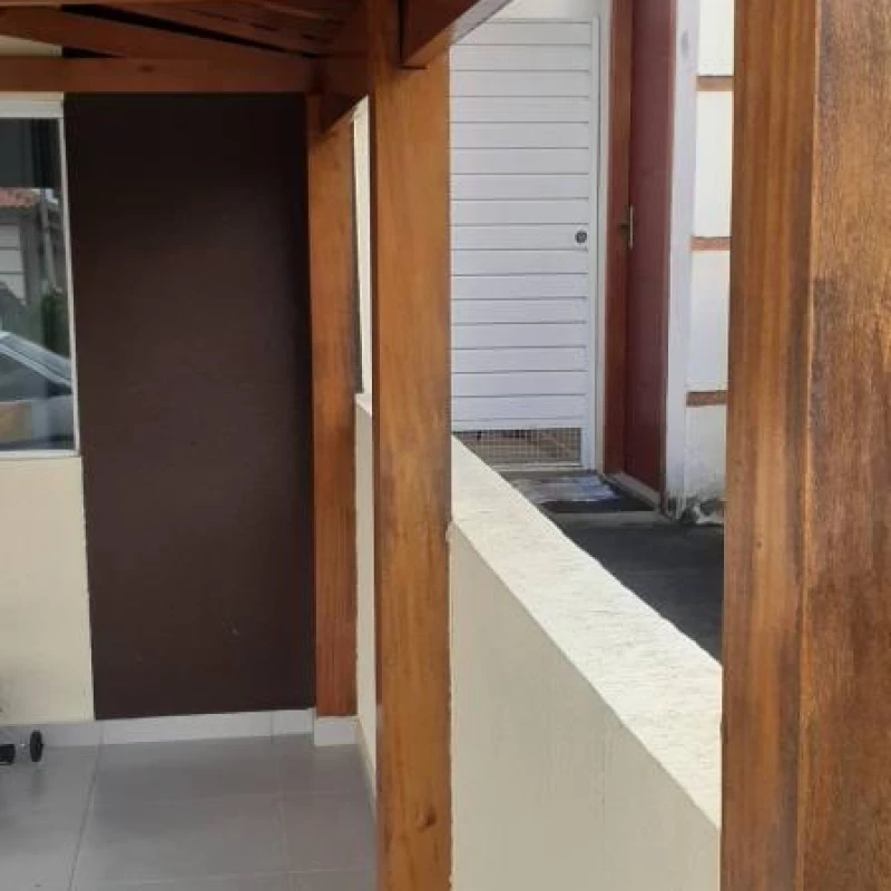 Aqui foi feita troca e colocação de torneira, reparos de pintura, complementodo condutor da calha, recolocação de rodapés, verniz em madeiramento que com o tempo perdeu a sua beleza.